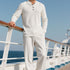 Mens Casual Solid-Color Button-Down Crew-Neck Long-Sleeve Pants Set