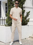 Summer Lightweight Zip Front Pants And Short Sleeve Top Set